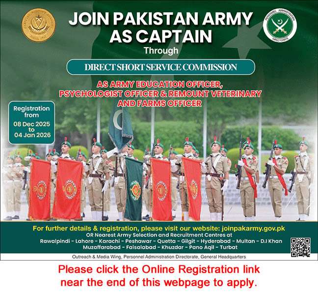 Join Pakistan Army as Captain December 2025 through Direct Short Service Commission Online Registration Latest